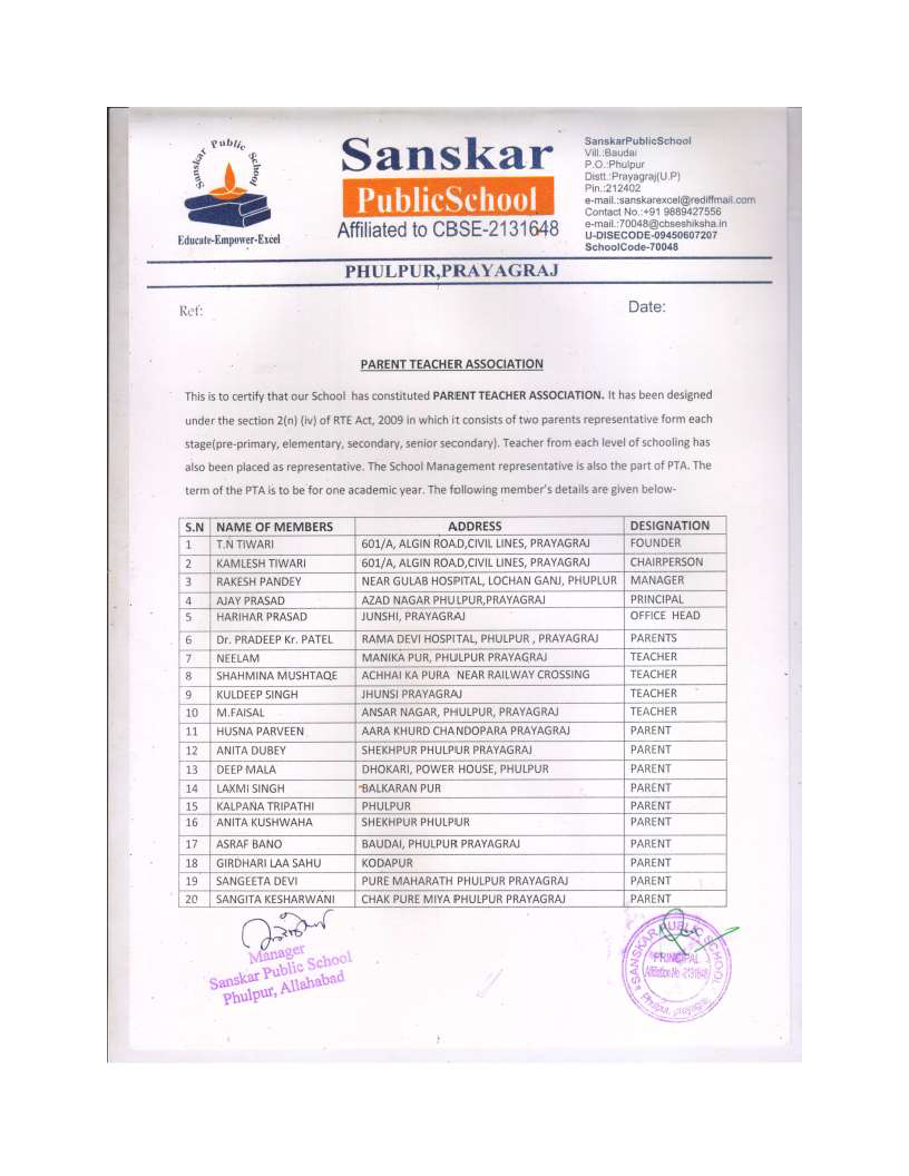 LIST OF PARENTS TEACHER ASSOCIATION (PTA) MEMBER